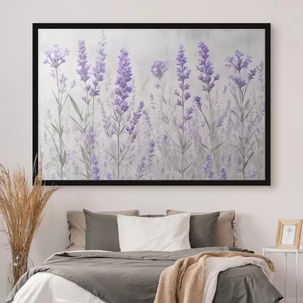 Plakatas Violetinių levandų gėlių laukas neryškios tekstūros fone f41265
