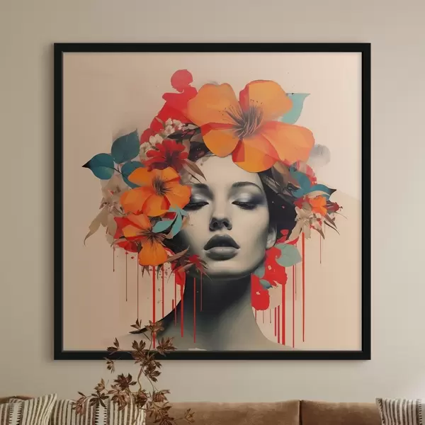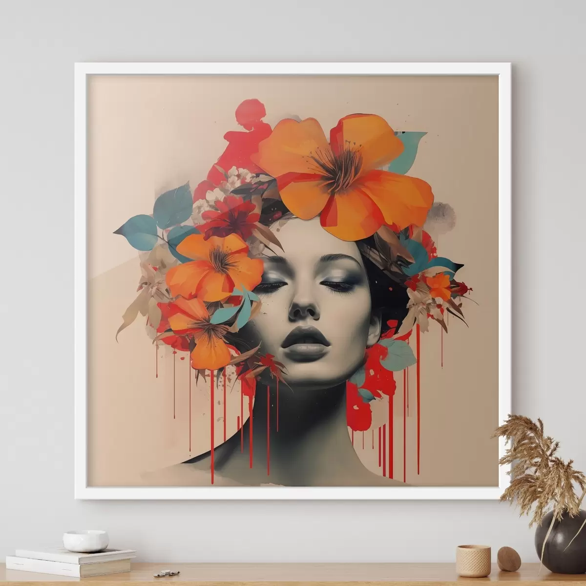 Plakatas Mergaitės portretas koliažo stiliumi su gėlėmis f41271