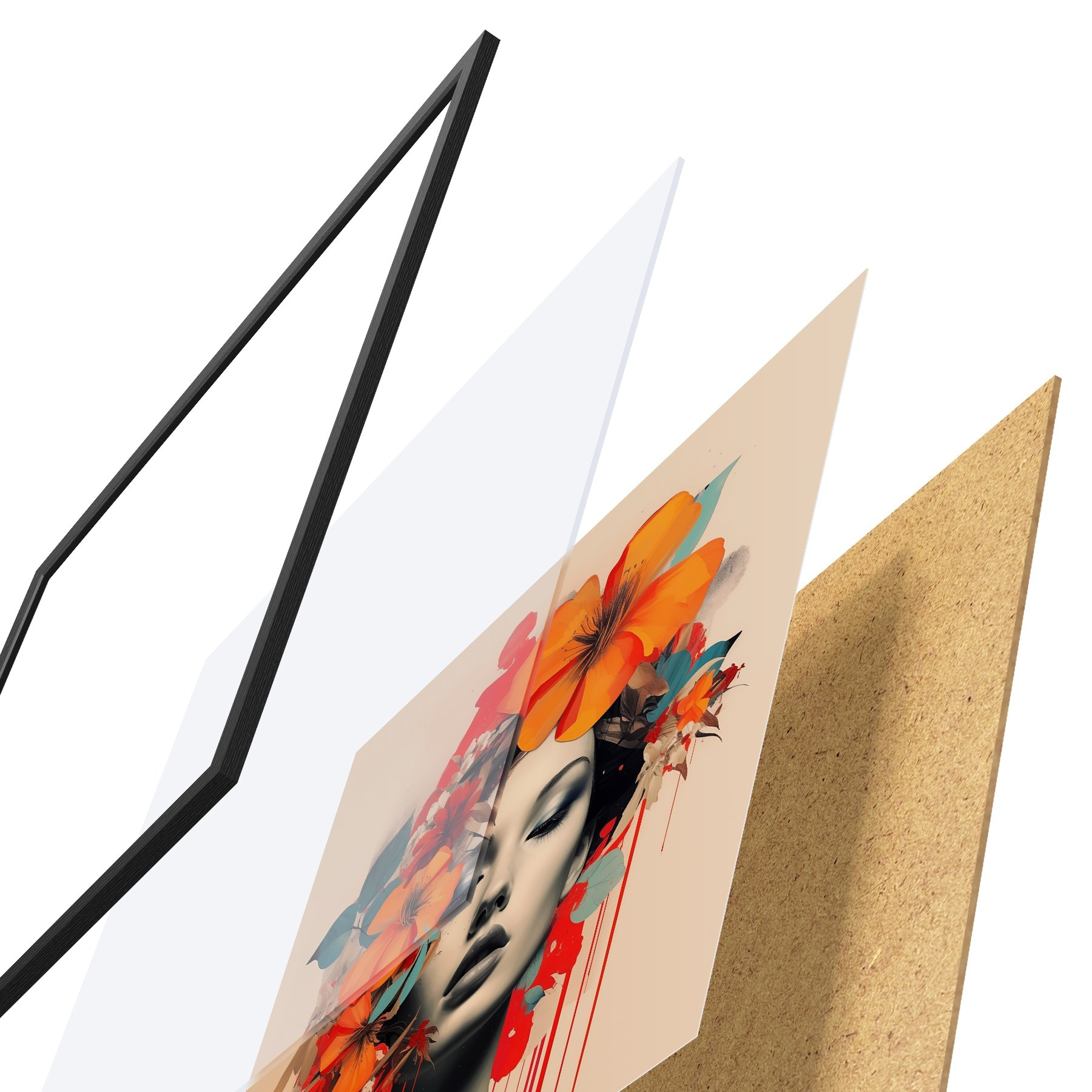 Plakatas Mergaitės portretas koliažo stiliumi su gėlėmis Ne f41271