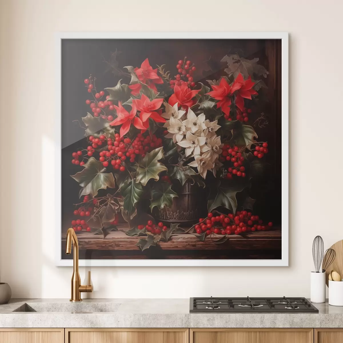 Plakatas Puokštė su švenčių gėlėmis tamsiame fone f41272