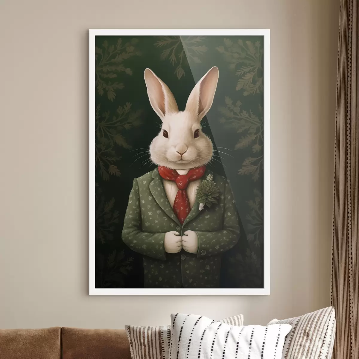 Plakatas Baltas kiškis su žaliu kostiumu ir raudonu kaklaraiščiu iliustracija f41278