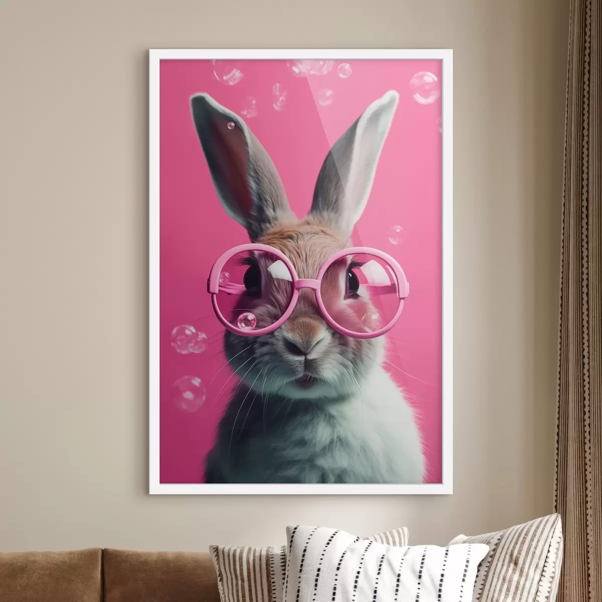 Plakatas Triušis rausvais akiniais rausvame fone Ne f41280