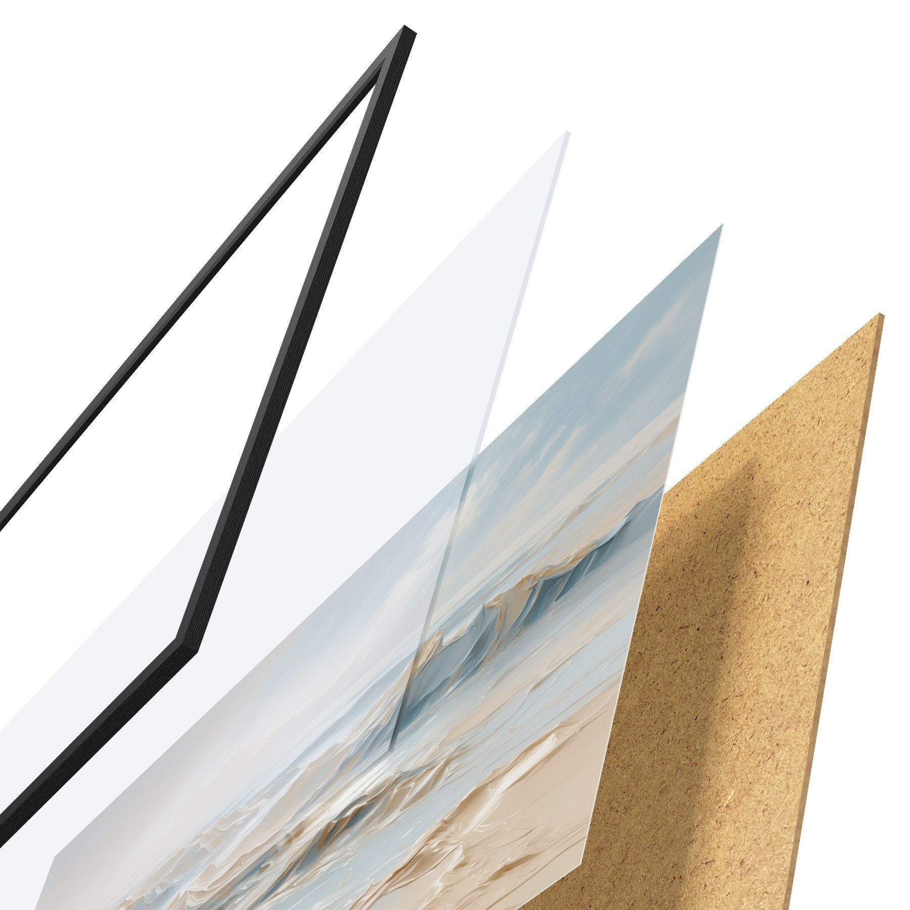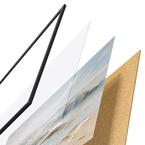 Plakatą sudaro rėmas, pleksiklas, atspausdintas vaizdas ir medžio drožlių plokštės pagrindas. Plakatą galima iš karto pakabinti ant sienos dėl kitoje pusėje esančių laikiklių.