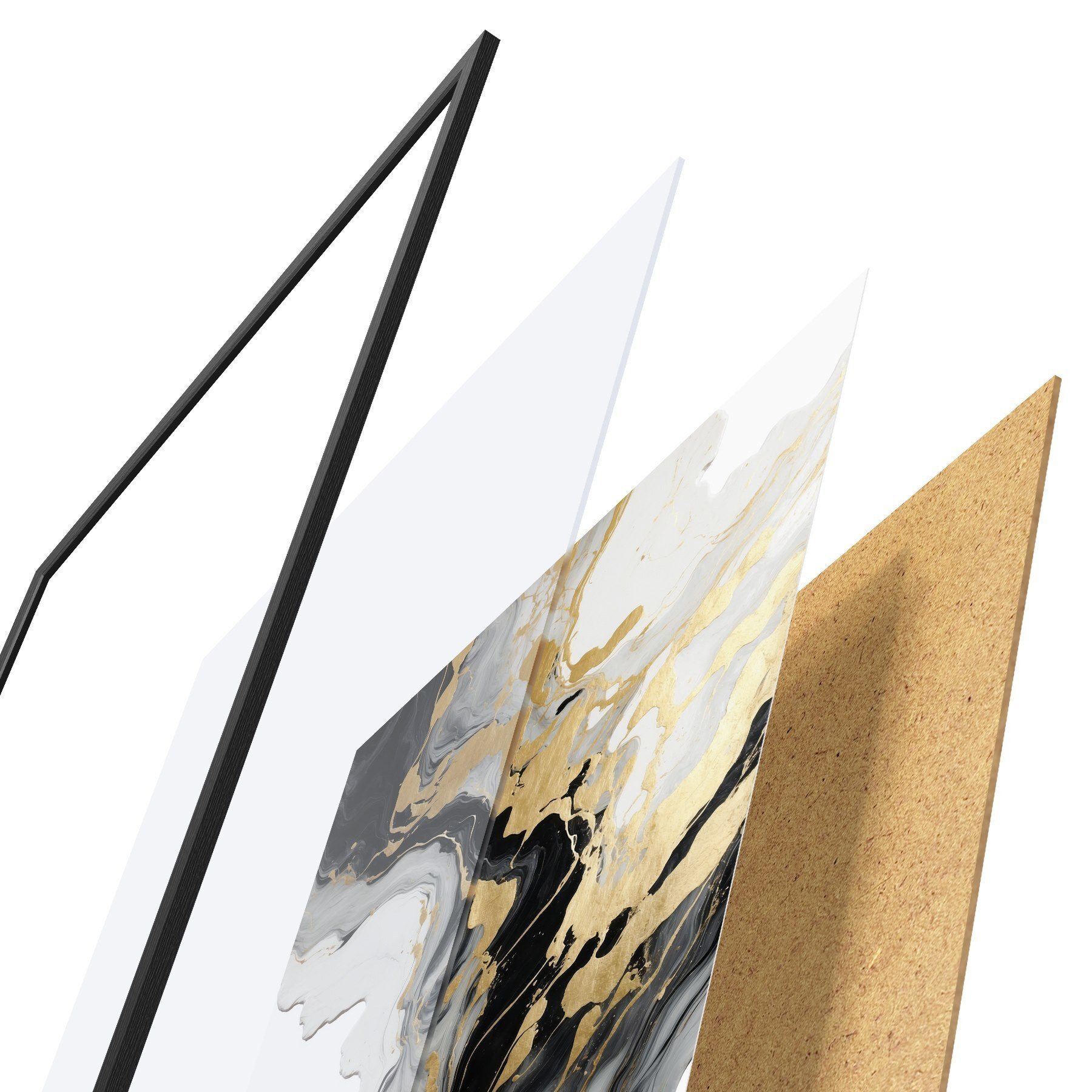 Plakatą sudaro rėmas, pleksiklas, atspausdintas vaizdas ir medžio drožlių plokštės pagrindas. Plakatą galima iš karto pakabinti ant sienos dėl kitoje pusėje esančių laikiklių.