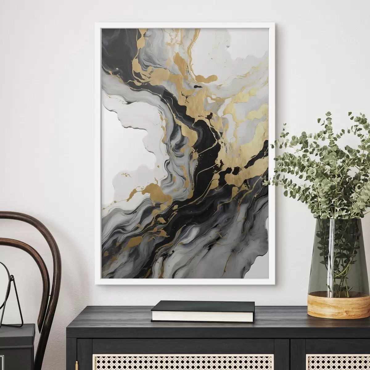 Plakatas Abstrakti tapyba akvarele su juodais ir geltonais dažais Ne f41290
