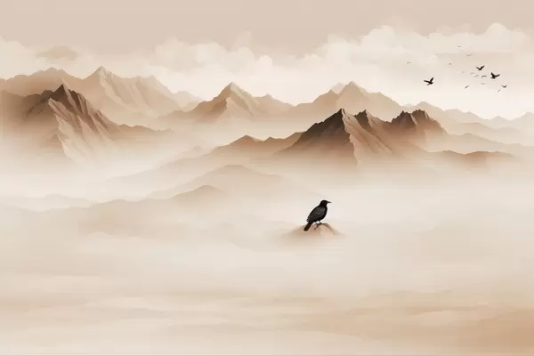 Plakatas Kalnai rūke vektorinėje grafikoje f41295