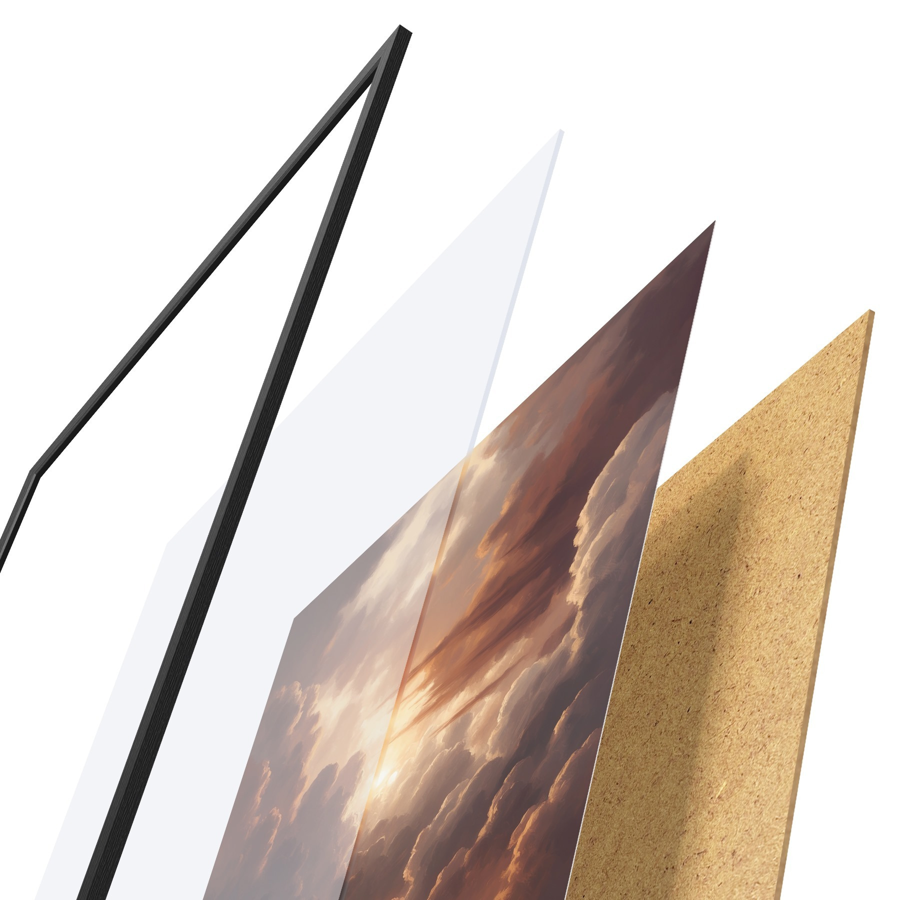 Plakatą sudaro rėmas, pleksiklas, atspausdintas vaizdas ir medžio drožlių plokštės pagrindas. Plakatą galima iš karto pakabinti ant sienos dėl kitoje pusėje esančių laikiklių.