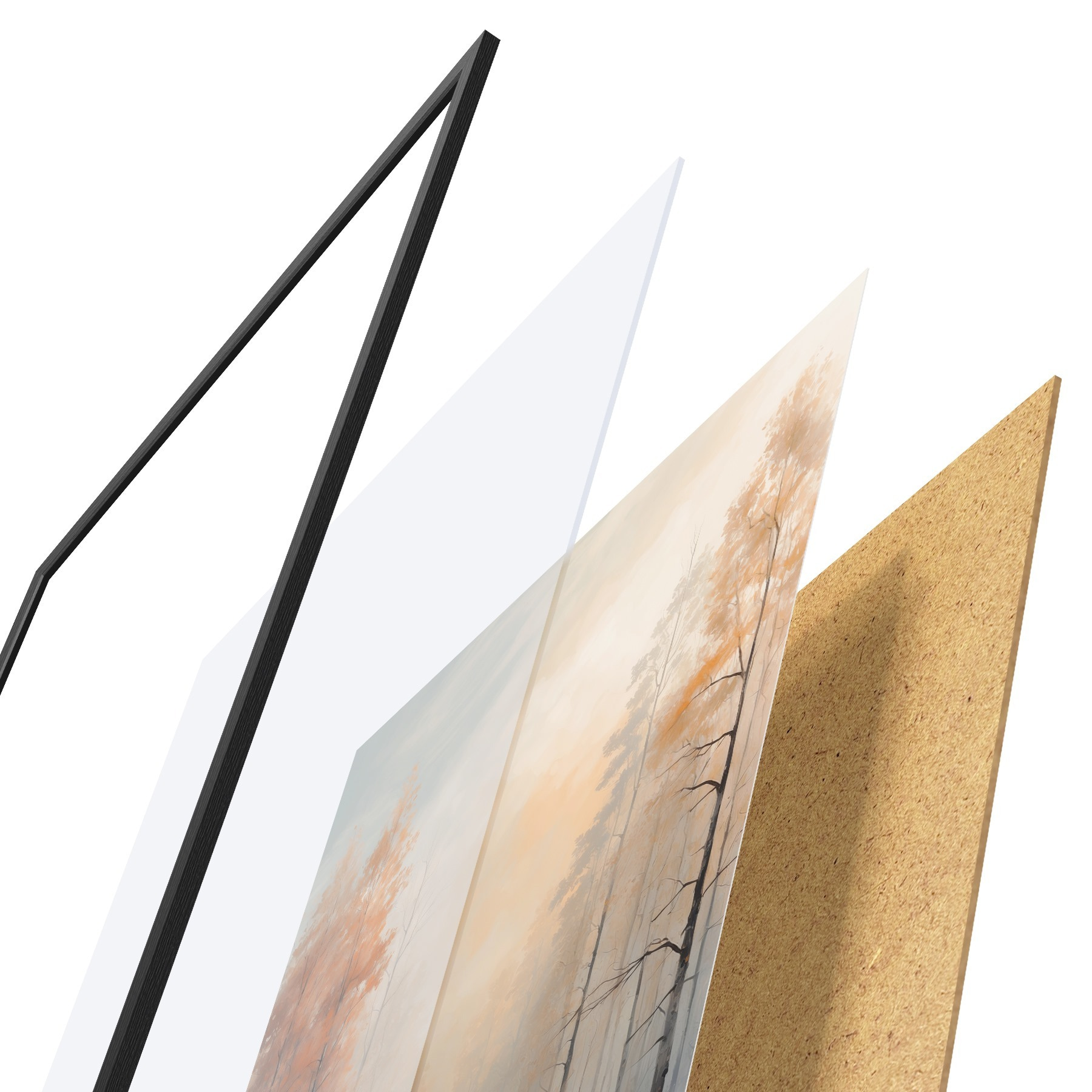 Plakatą sudaro rėmas, pleksiklas, atspausdintas vaizdas ir medžio drožlių plokštės pagrindas. Plakatą galima iš karto pakabinti ant sienos dėl kitoje pusėje esančių laikiklių.