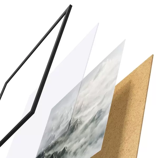 Plakatą sudaro rėmas, pleksiklas, atspausdintas vaizdas ir medžio drožlių plokštės pagrindas. Plakatą galima iš karto pakabinti ant sienos dėl kitoje pusėje esančių laikiklių.