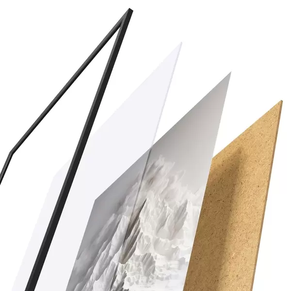 Plakatą sudaro rėmas, pleksiklas, atspausdintas vaizdas ir medžio drožlių plokštės pagrindas. Plakatą galima iš karto pakabinti ant sienos dėl kitoje pusėje esančių laikiklių.