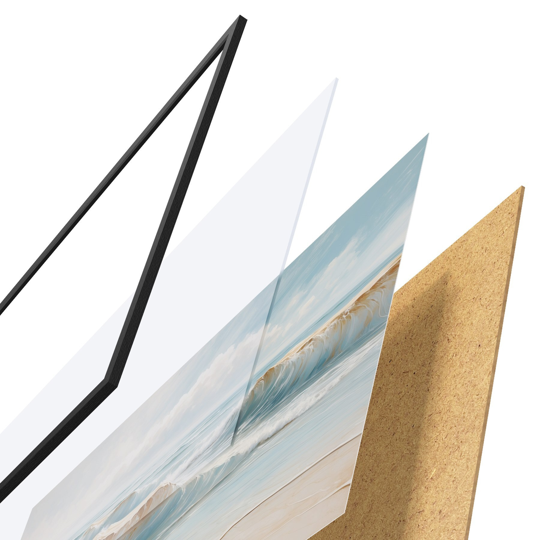 Plakatą sudaro rėmas, pleksiklas, atspausdintas vaizdas ir medžio drožlių plokštės pagrindas. Plakatą galima iš karto pakabinti ant sienos dėl kitoje pusėje esančių laikiklių.