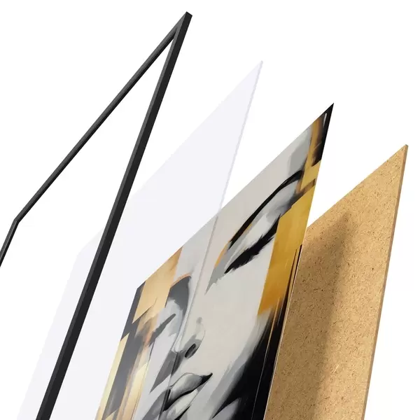 Plakatą sudaro rėmas, pleksiklas, atspausdintas vaizdas ir medžio drožlių plokštės pagrindas. Plakatą galima iš karto pakabinti ant sienos dėl kitoje pusėje esančių laikiklių.