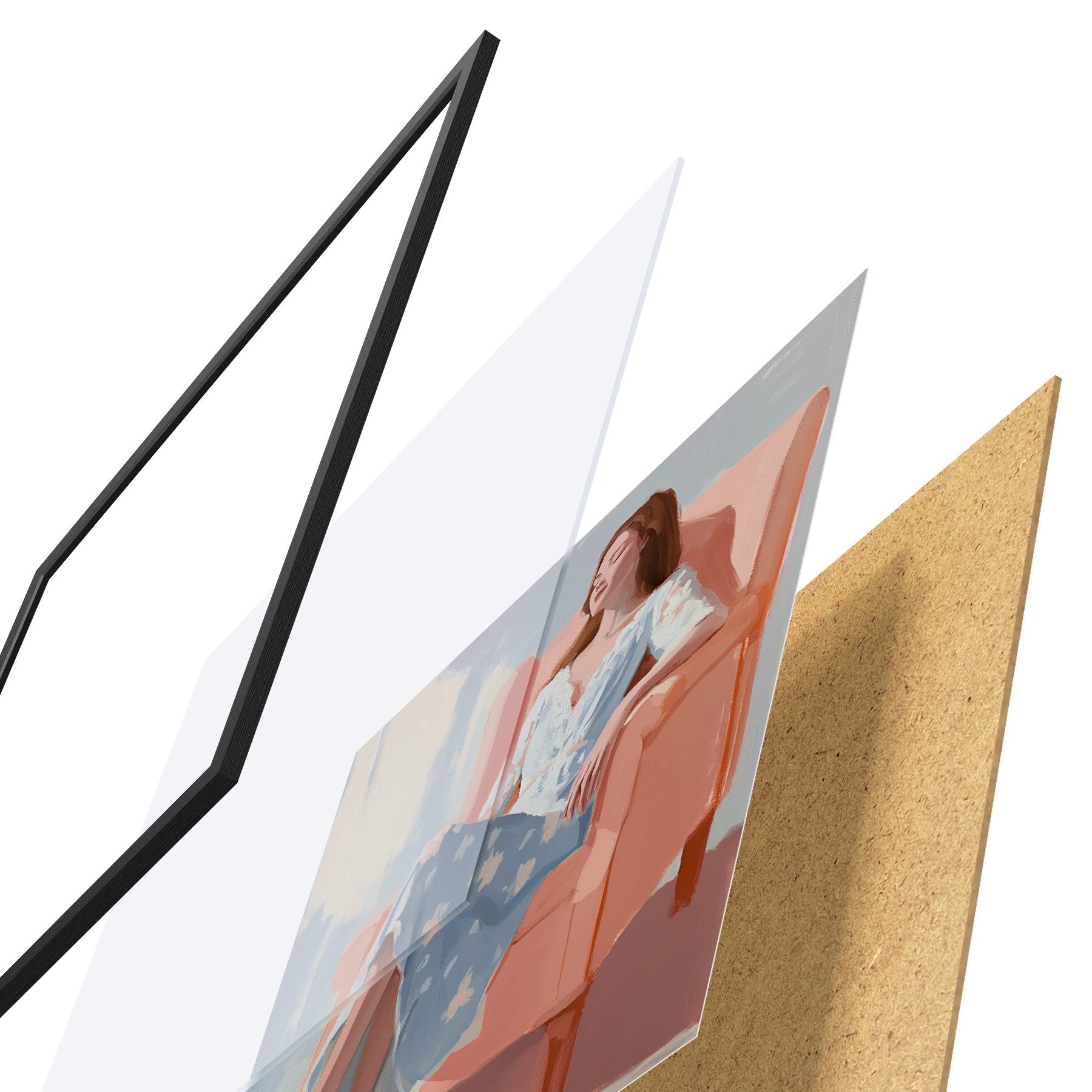 Plakatą sudaro rėmas, pleksiklas, atspausdintas vaizdas ir medžio drožlių plokštės pagrindas. Plakatą galima iš karto pakabinti ant sienos dėl kitoje pusėje esančių laikiklių.