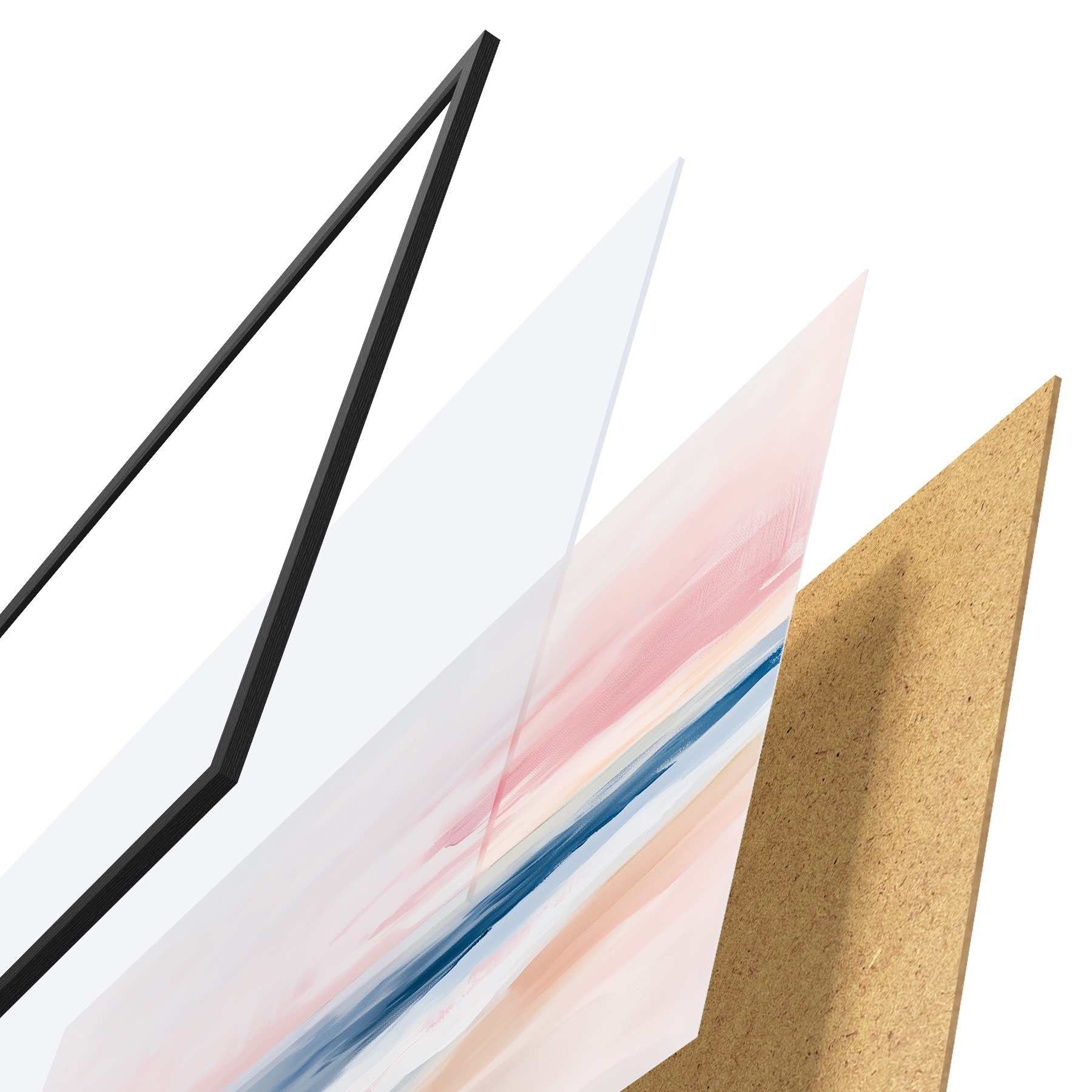 Plakatą sudaro rėmas, pleksiklas, atspausdintas vaizdas ir medžio drožlių plokštės pagrindas. Plakatą galima iš karto pakabinti ant sienos dėl kitoje pusėje esančių laikiklių.