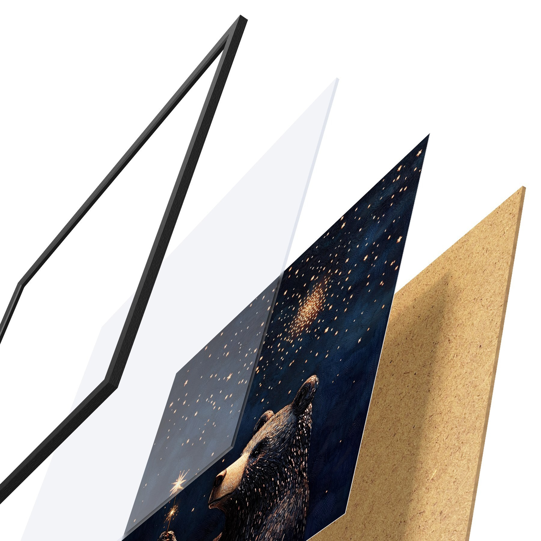 Plakatą sudaro rėmas, pleksiklas, atspausdintas vaizdas ir medžio drožlių plokštės pagrindas. Plakatą galima iš karto pakabinti ant sienos dėl kitoje pusėje esančių laikiklių.