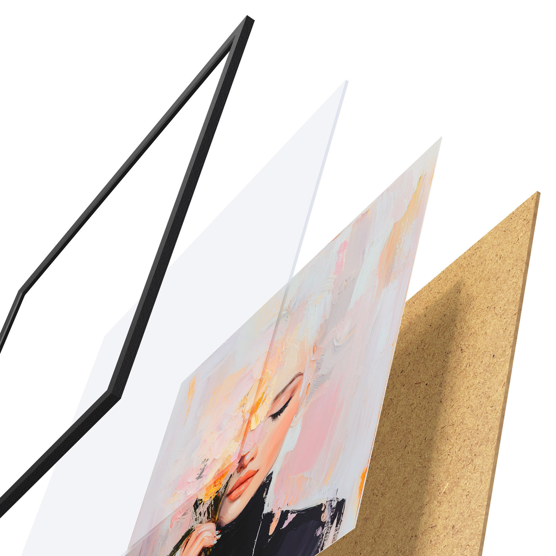 Plakatą sudaro rėmas, pleksiklas, atspausdintas vaizdas ir medžio drožlių plokštės pagrindas. Plakatą galima iš karto pakabinti ant sienos dėl kitoje pusėje esančių laikiklių.