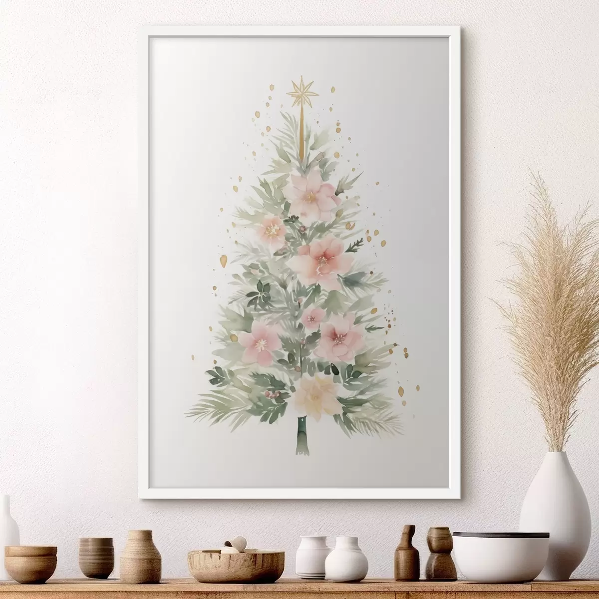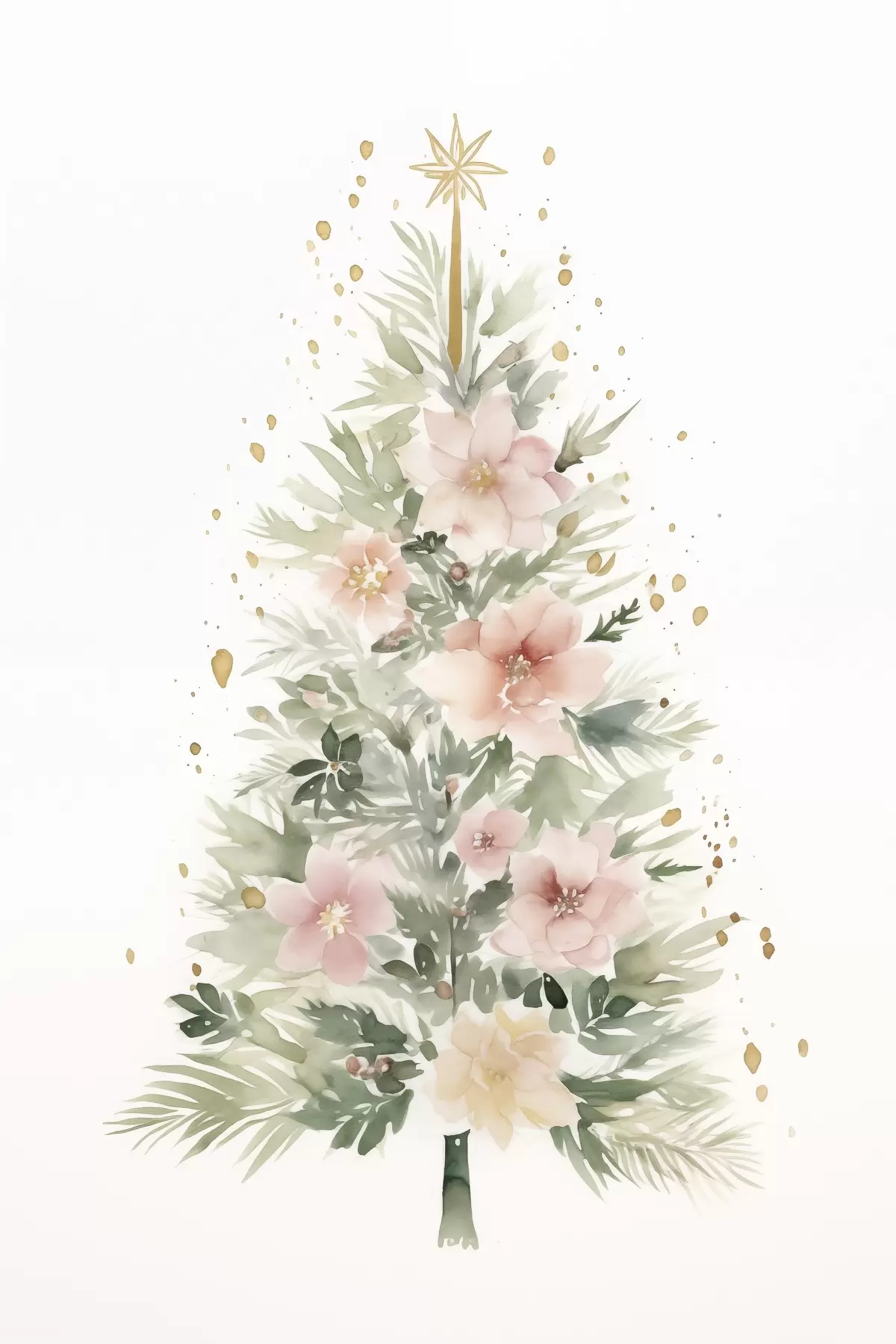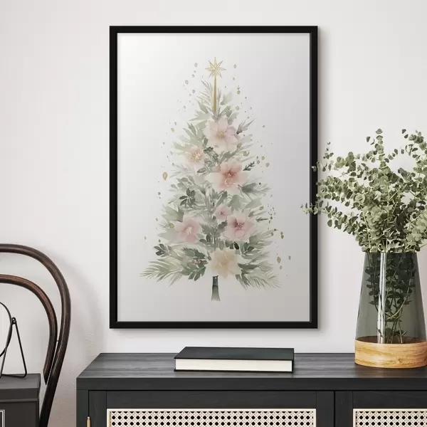 Plakatas Akvarelė Kalėdų eglutė, pušis, gėlių Ne f41360
