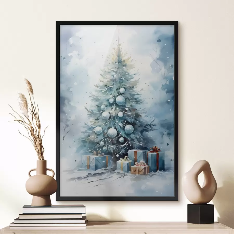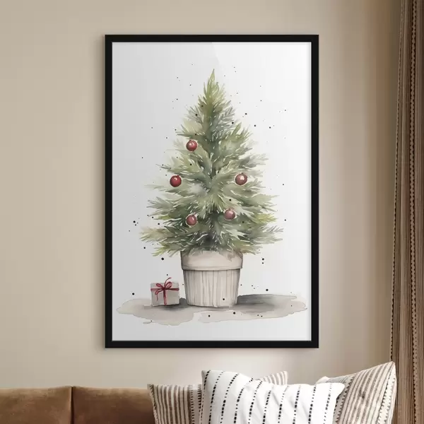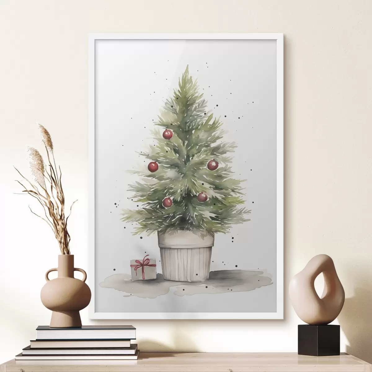 Plakatas Akvarelė Kalėdų eglutė vazone, pušis, dovana f41361