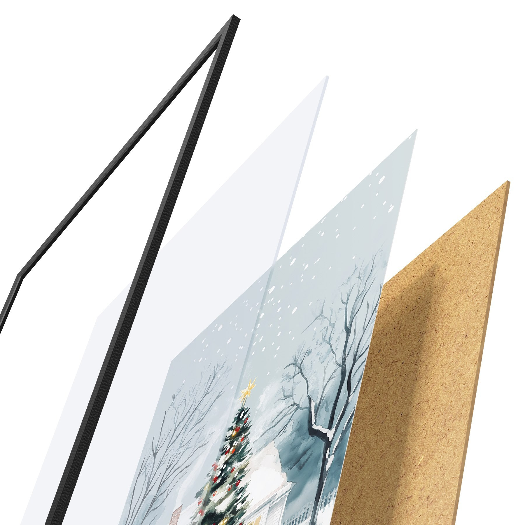 Plakatą sudaro rėmas, pleksiklas, atspausdintas vaizdas ir medžio drožlių plokštės pagrindas. Plakatą galima iš karto pakabinti ant sienos dėl kitoje pusėje esančių laikiklių.