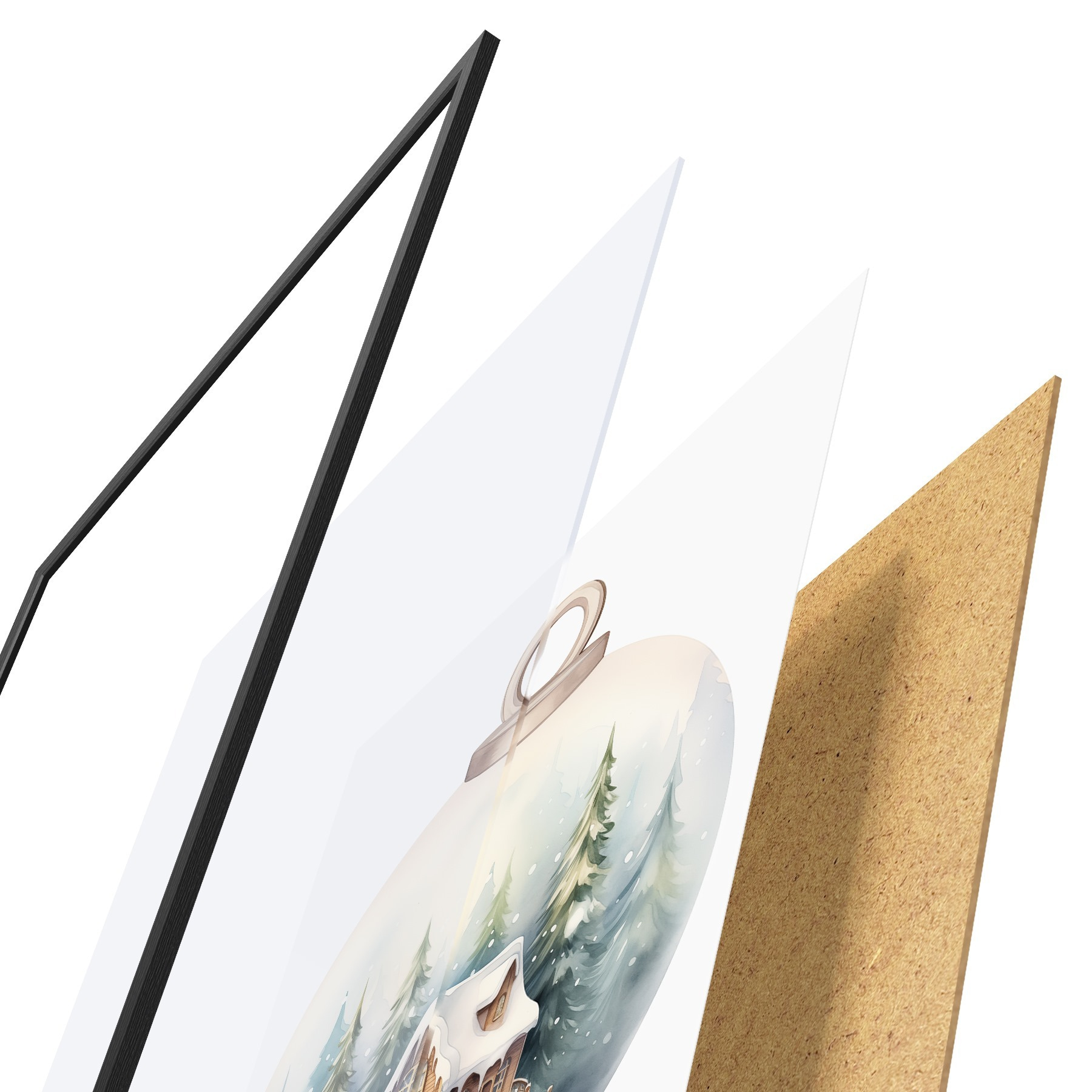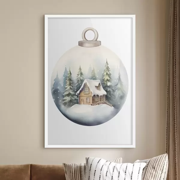 Plakatas Akvarelinis krištolinis rutulys su žiemos scenomis, namas miške, sniegas Ne f41366