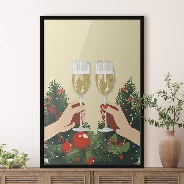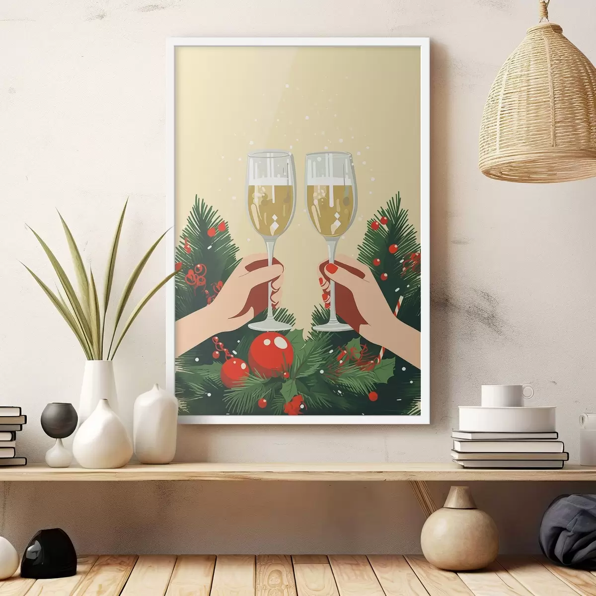 Plakatas Taurės su šampanu, šventė, Ney metai, abstrakcija, pop menas f41367