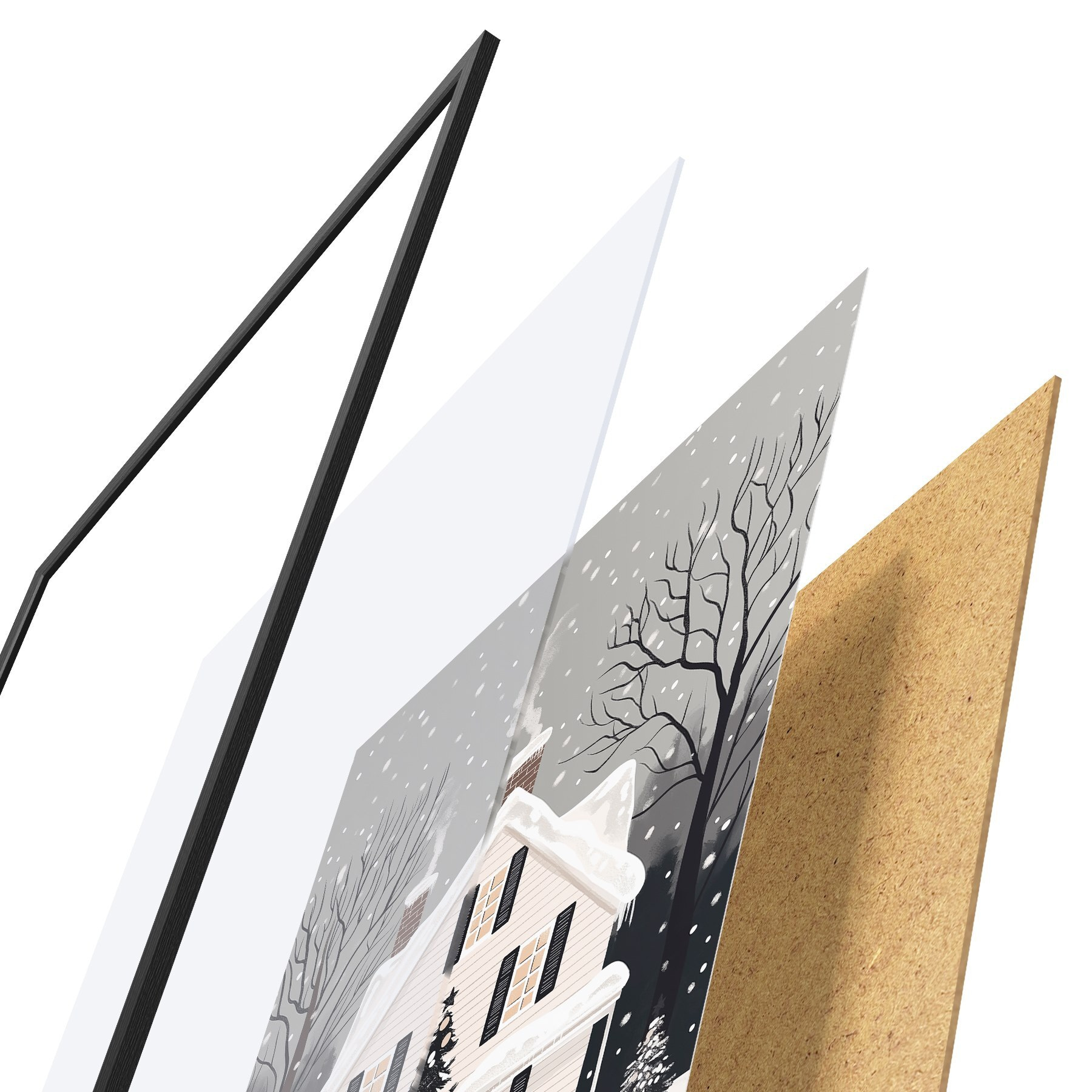 Plakatą sudaro rėmas, pleksiklas, atspausdintas vaizdas ir medžio drožlių plokštės pagrindas. Plakatą galima iš karto pakabinti ant sienos dėl kitoje pusėje esančių laikiklių.