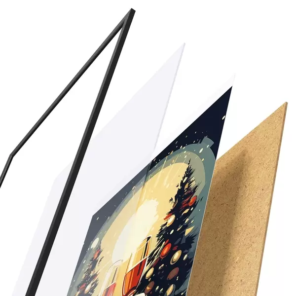 Plakatą sudaro rėmas, pleksiklas, atspausdintas vaizdas ir medžio drožlių plokštės pagrindas. Plakatą galima iš karto pakabinti ant sienos dėl kitoje pusėje esančių laikiklių.