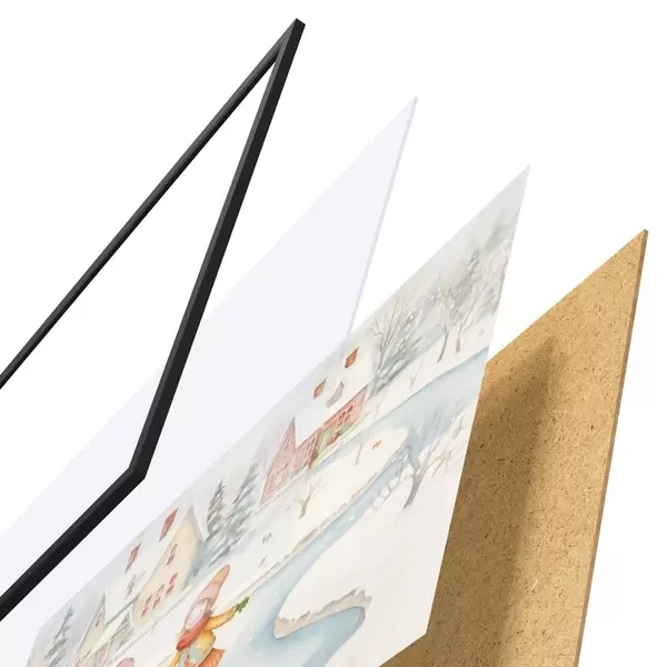 Plakatą sudaro rėmas, pleksiklas, atspausdintas vaizdas ir medžio drožlių plokštės pagrindas. Plakatą galima iš karto pakabinti ant sienos dėl kitoje pusėje esančių laikiklių.