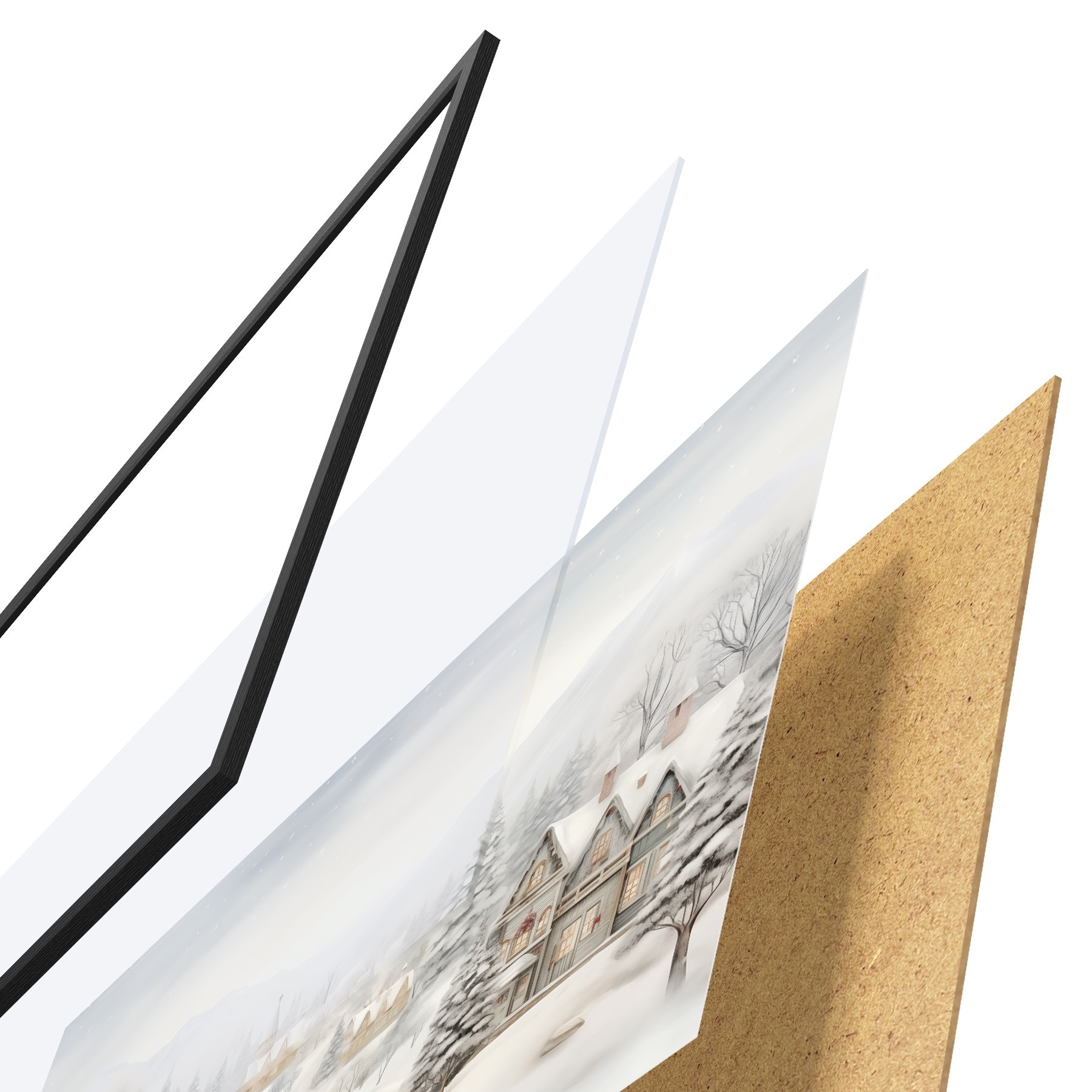 Plakatą sudaro rėmas, pleksiklas, atspausdintas vaizdas ir medžio drožlių plokštės pagrindas. Plakatą galima iš karto pakabinti ant sienos dėl kitoje pusėje esančių laikiklių.