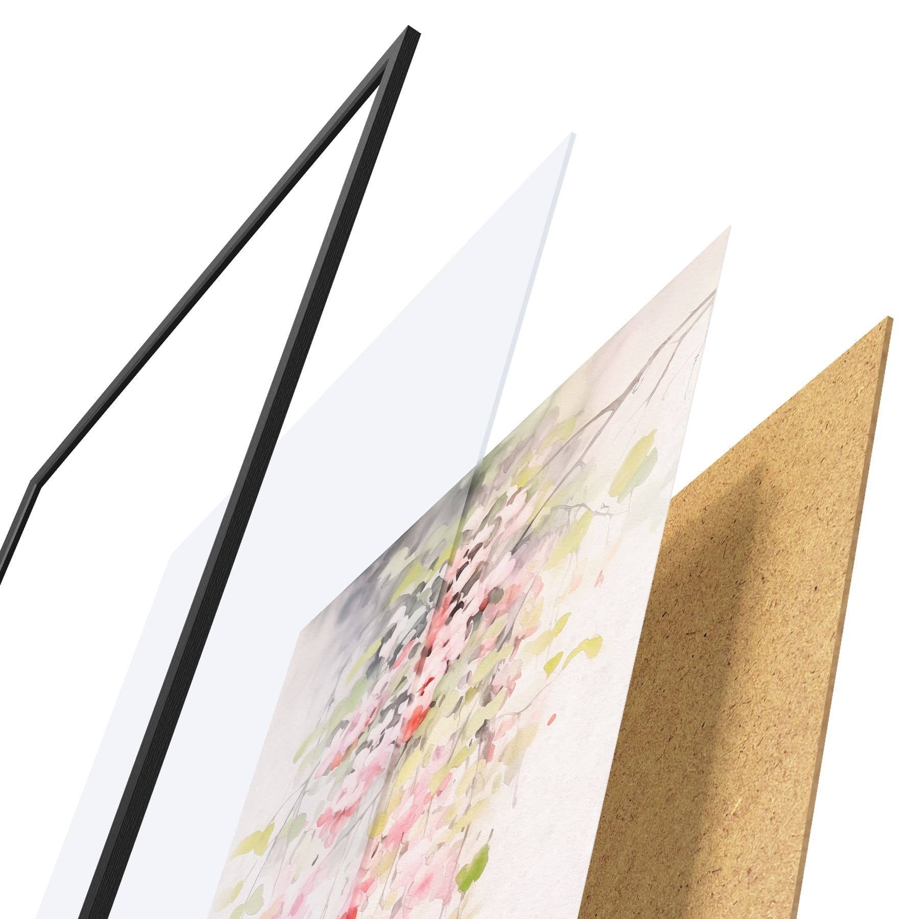 Plakatą sudaro rėmas, pleksiklas, atspausdintas vaizdas ir medžio drožlių plokštės pagrindas. Plakatą galima iš karto pakabinti ant sienos dėl kitoje pusėje esančių laikiklių.