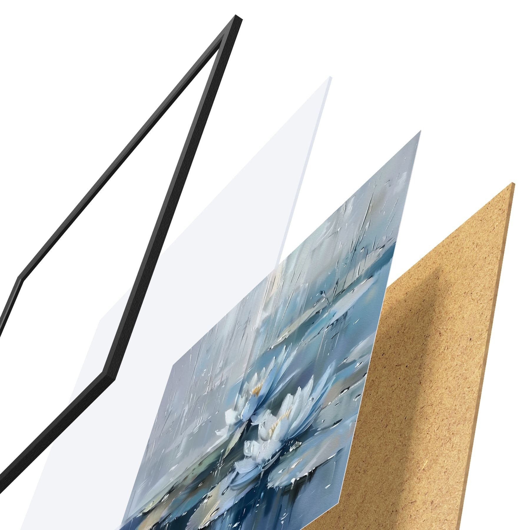 Plakatą sudaro rėmas, pleksiklas, atspausdintas vaizdas ir medžio drožlių plokštės pagrindas. Plakatą galima iš karto pakabinti ant sienos dėl kitoje pusėje esančių laikiklių.