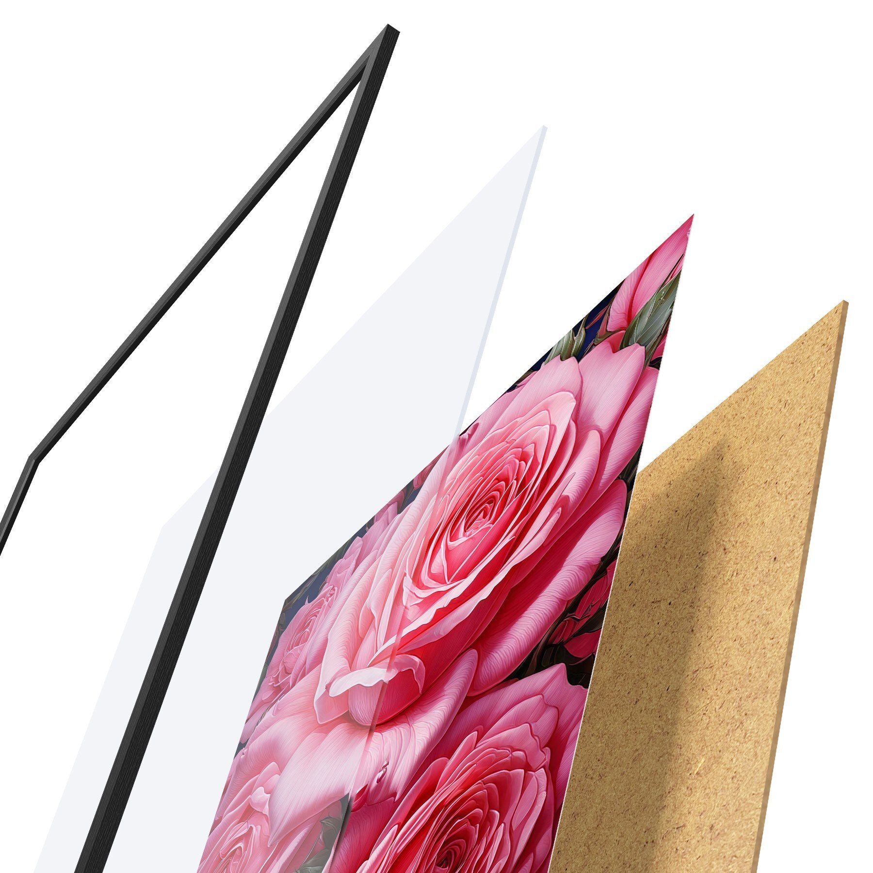 Plakatą sudaro rėmas, pleksiklas, atspausdintas vaizdas ir medžio drožlių plokštės pagrindas. Plakatą galima iš karto pakabinti ant sienos dėl kitoje pusėje esančių laikiklių.