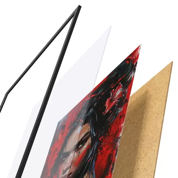 Plakatą sudaro rėmas, pleksiklas, atspausdintas vaizdas ir medžio drožlių plokštės pagrindas. Plakatą galima iš karto pakabinti ant sienos dėl kitoje pusėje esančių laikiklių.
