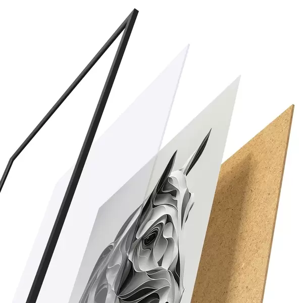 Plakatą sudaro rėmas, pleksiklas, atspausdintas vaizdas ir medžio drožlių plokštės pagrindas. Plakatą galima iš karto pakabinti ant sienos dėl kitoje pusėje esančių laikiklių.