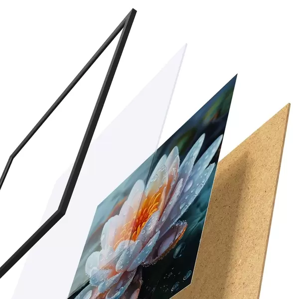 Plakatą sudaro rėmas, pleksiklas, atspausdintas vaizdas ir medžio drožlių plokštės pagrindas. Plakatą galima iš karto pakabinti ant sienos dėl kitoje pusėje esančių laikiklių.
