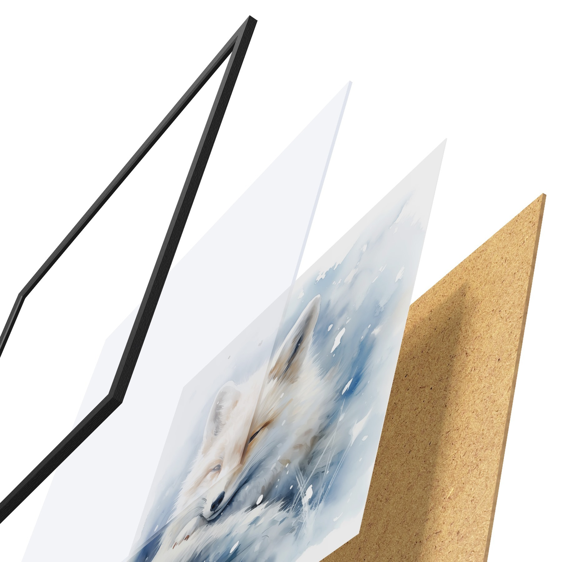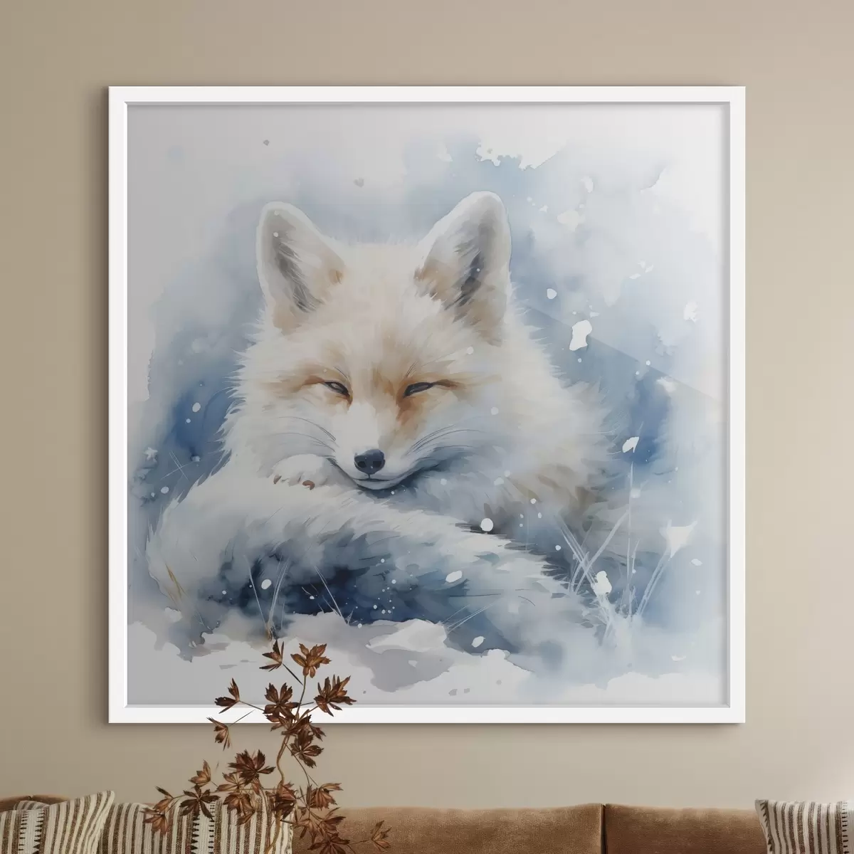 Plakatas Lapė sniege imituoja akvarelės iliustraciją f41436