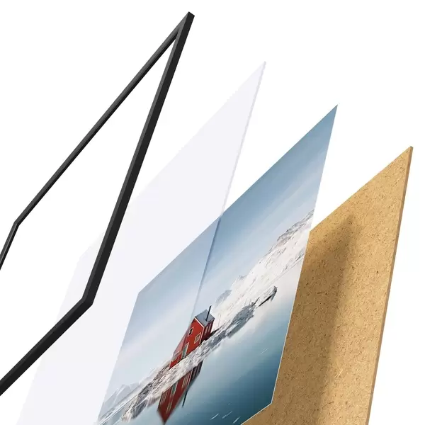 Plakatą sudaro rėmas, pleksiklas, atspausdintas vaizdas ir medžio drožlių plokštės pagrindas. Plakatą galima iš karto pakabinti ant sienos dėl kitoje pusėje esančių laikiklių.