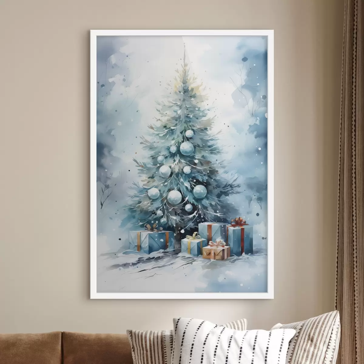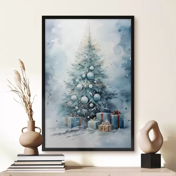 Plakatas Dovanos prie Kalėdų eglutės imitacija akvarelė Ne f41439