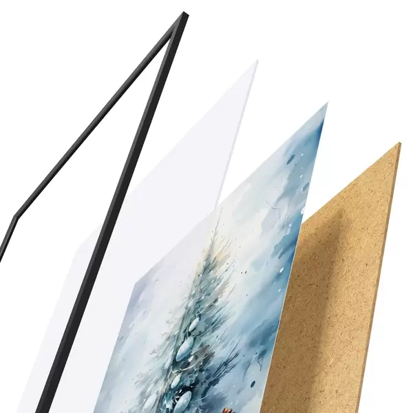 Plakatą sudaro rėmas, pleksiklas, atspausdintas vaizdas ir medžio drožlių plokštės pagrindas. Plakatą galima iš karto pakabinti ant sienos dėl kitoje pusėje esančių laikiklių.