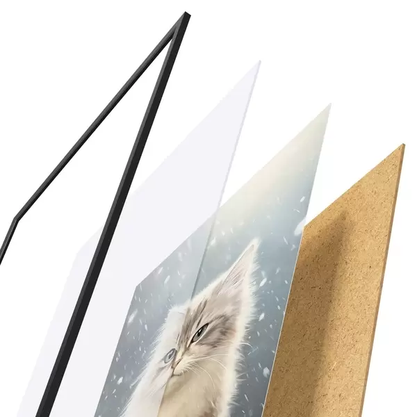 Plakatą sudaro rėmas, pleksiklas, atspausdintas vaizdas ir medžio drožlių plokštės pagrindas. Plakatą galima iš karto pakabinti ant sienos dėl kitoje pusėje esančių laikiklių.