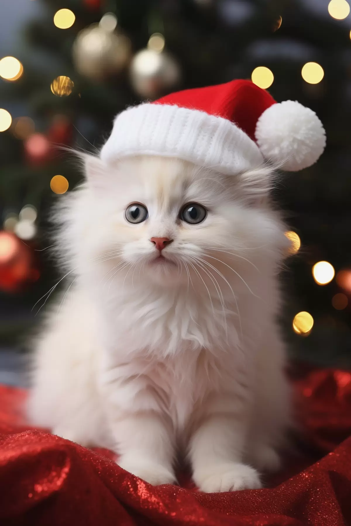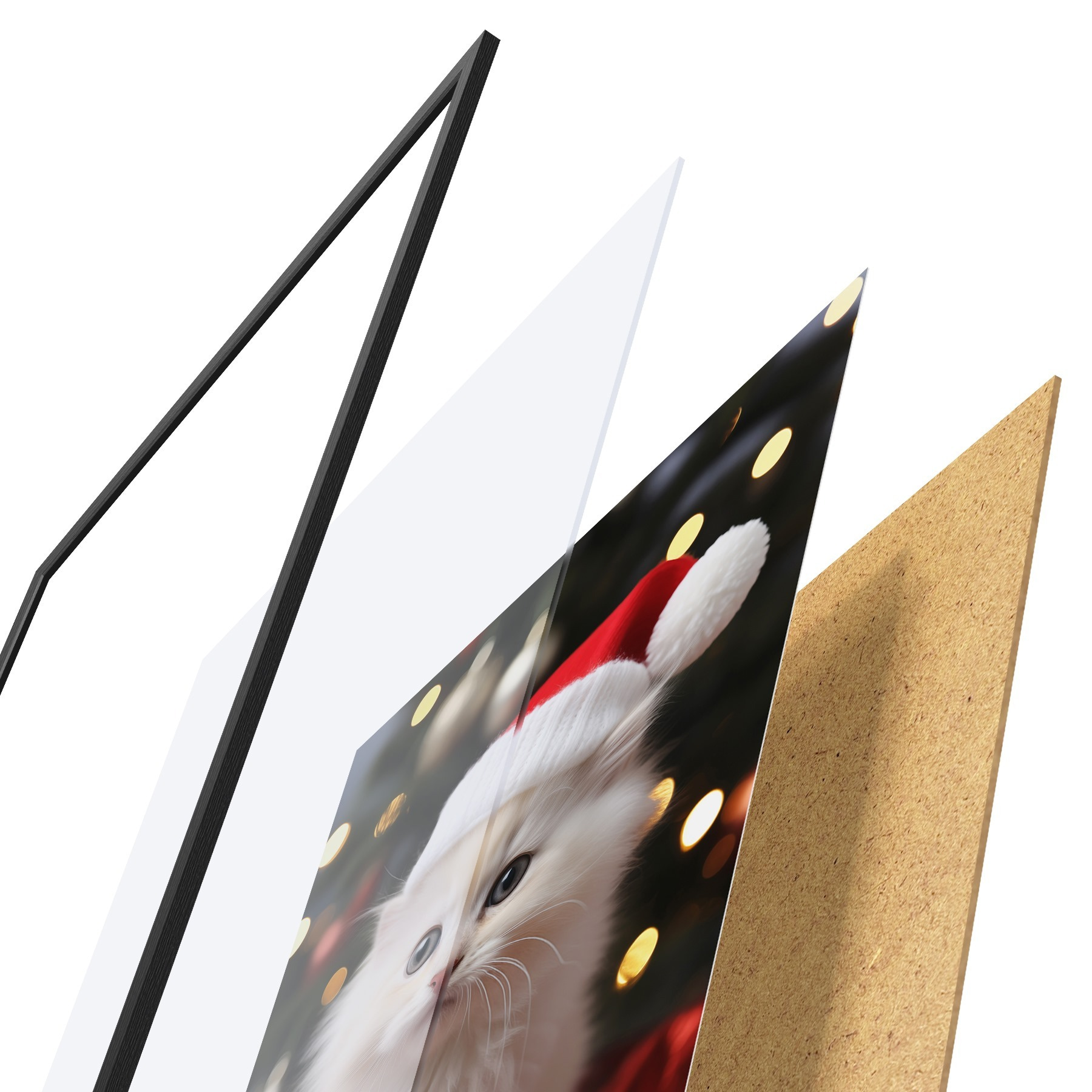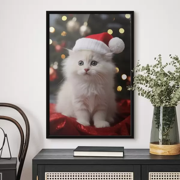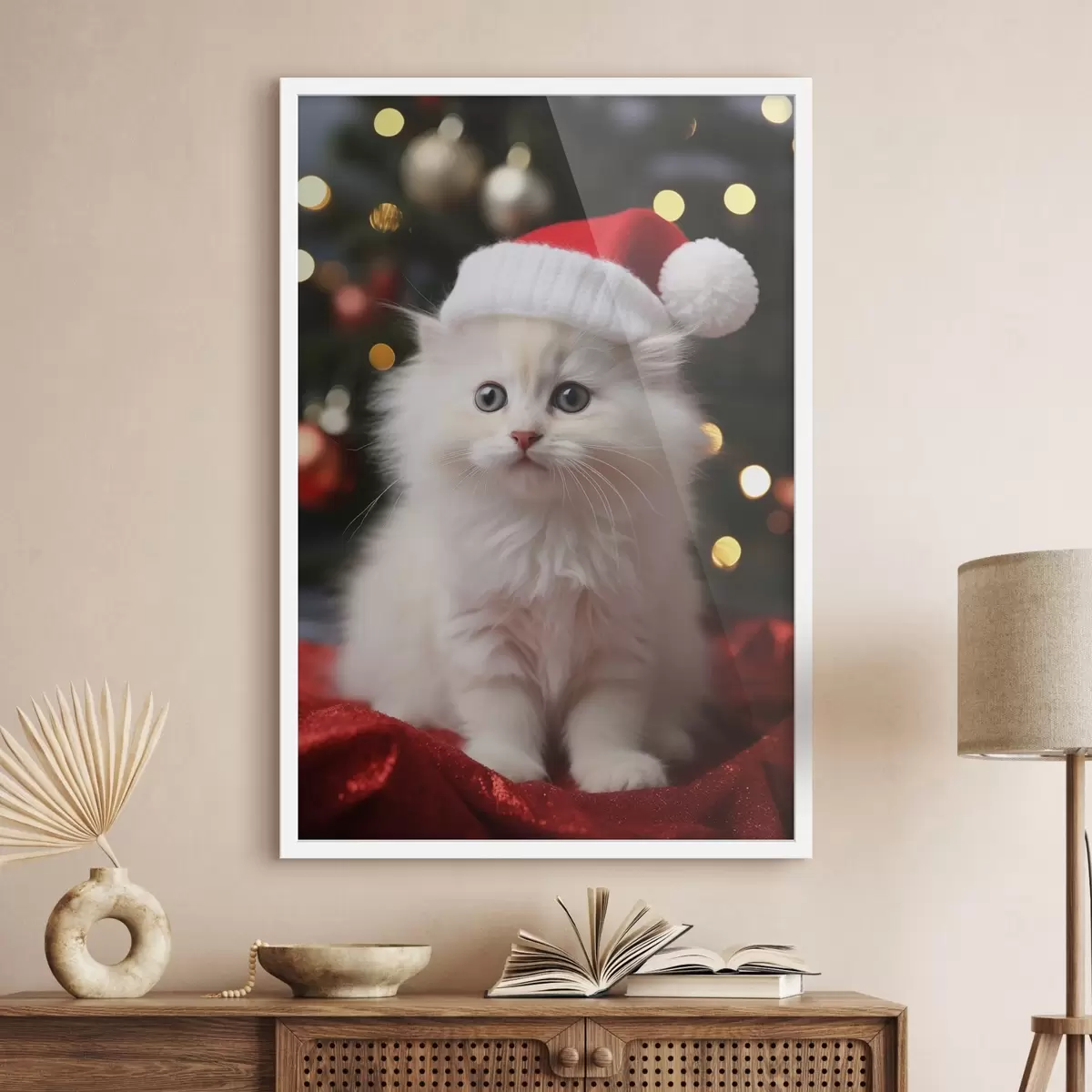 Plakatas Baltas pūkuotas kačiukas su raudona kalėdine kepure Ne f41442