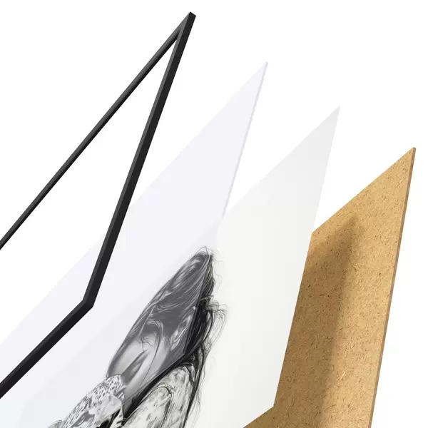 Plakatą sudaro rėmas, pleksiklas, atspausdintas vaizdas ir medžio drožlių plokštės pagrindas. Plakatą galima iš karto pakabinti ant sienos dėl kitoje pusėje esančių laikiklių.