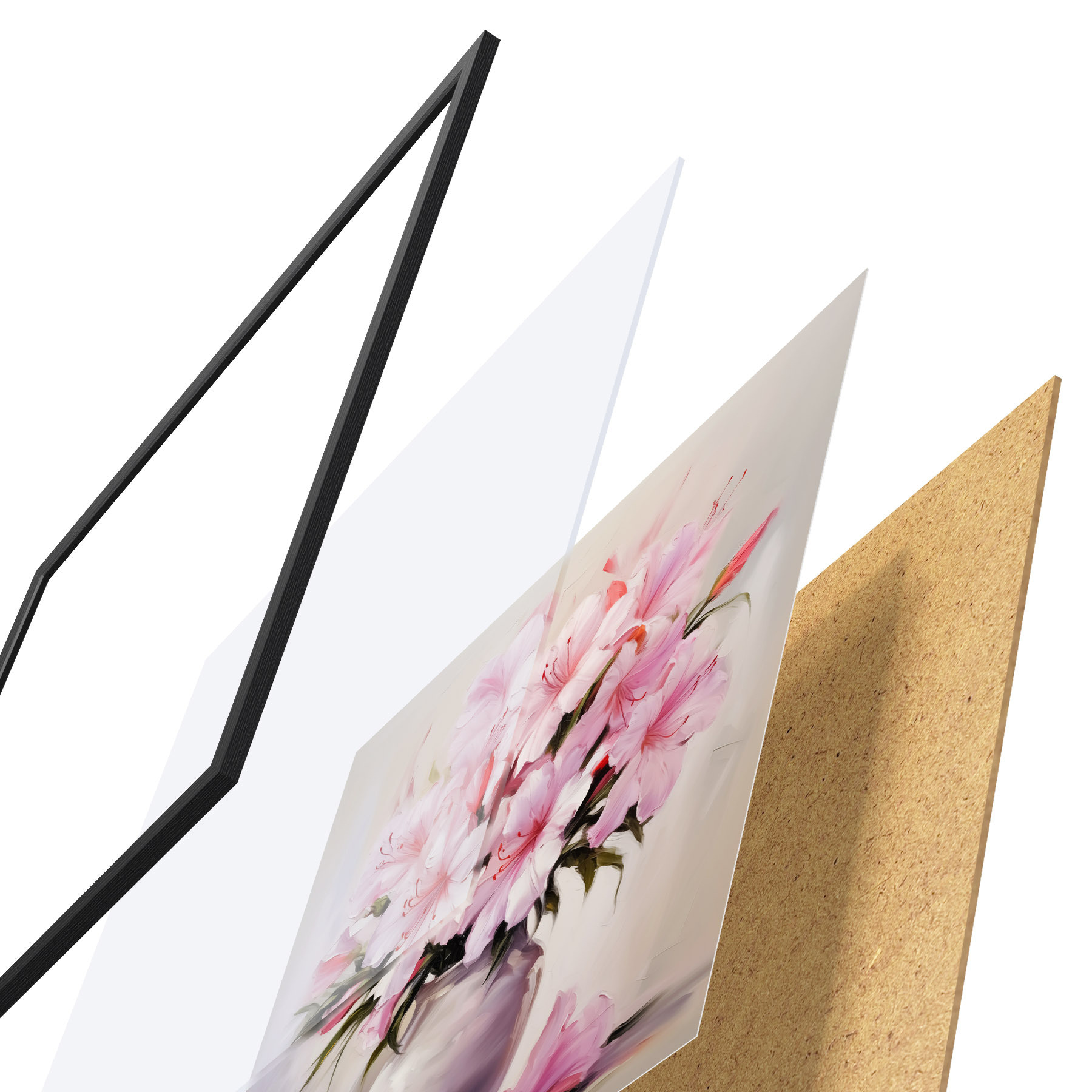 Plakatą sudaro rėmas, pleksiklas, atspausdintas vaizdas ir medžio drožlių plokštės pagrindas. Plakatą galima iš karto pakabinti ant sienos dėl kitoje pusėje esančių laikiklių.