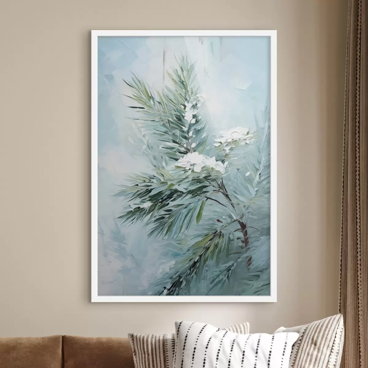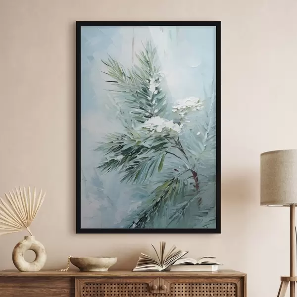 Plakatas Eglės šaka sniege imituoja paveikslą f41474
