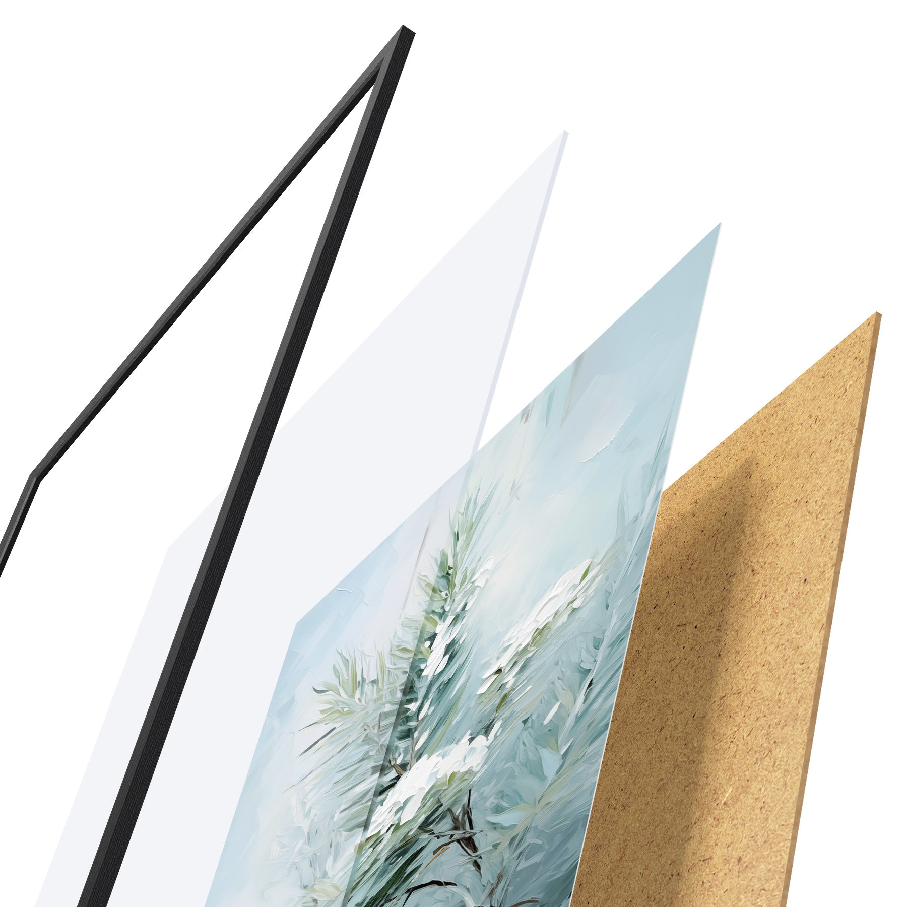 Plakatą sudaro rėmas, pleksiklas, atspausdintas vaizdas ir medžio drožlių plokštės pagrindas. Plakatą galima iš karto pakabinti ant sienos dėl kitoje pusėje esančių laikiklių.