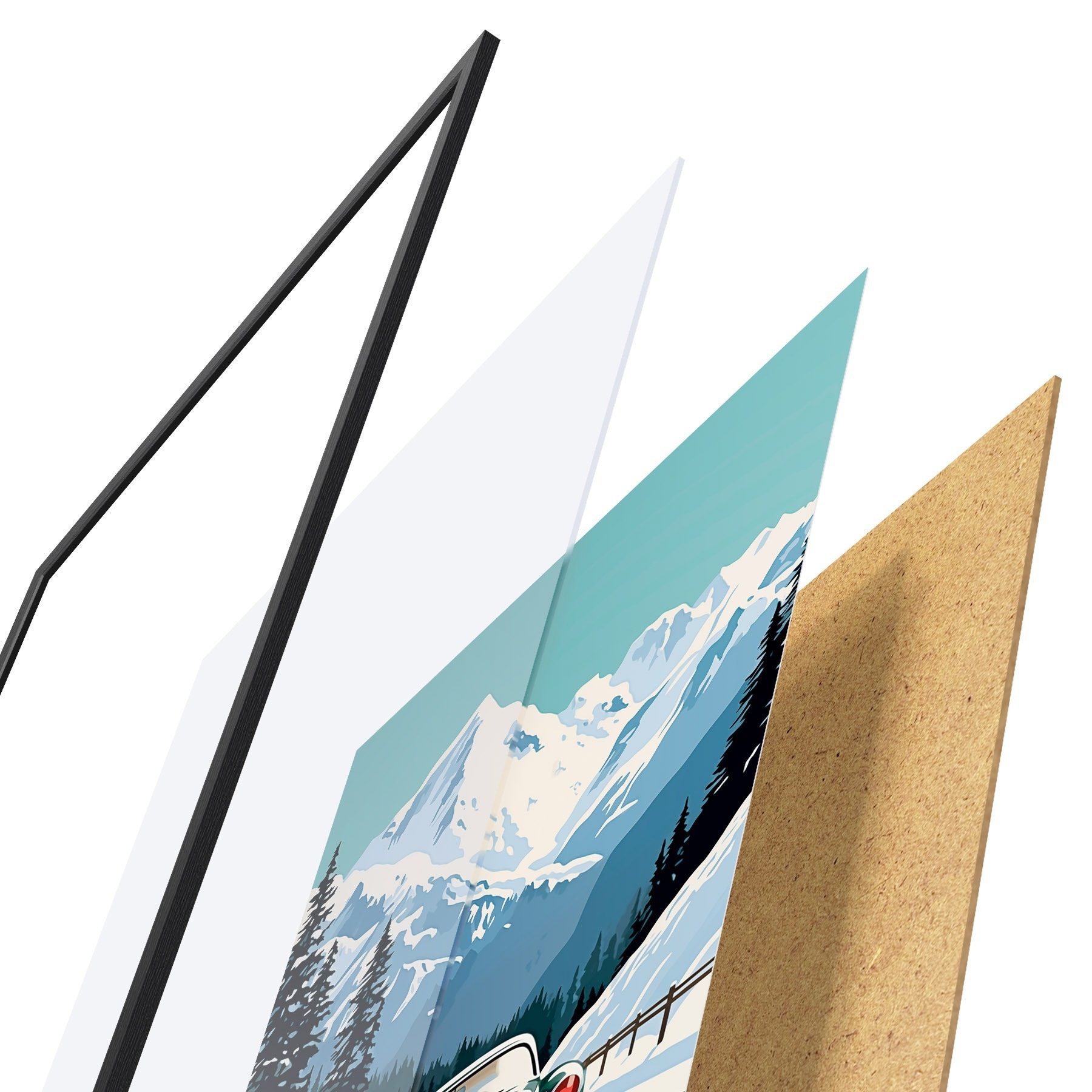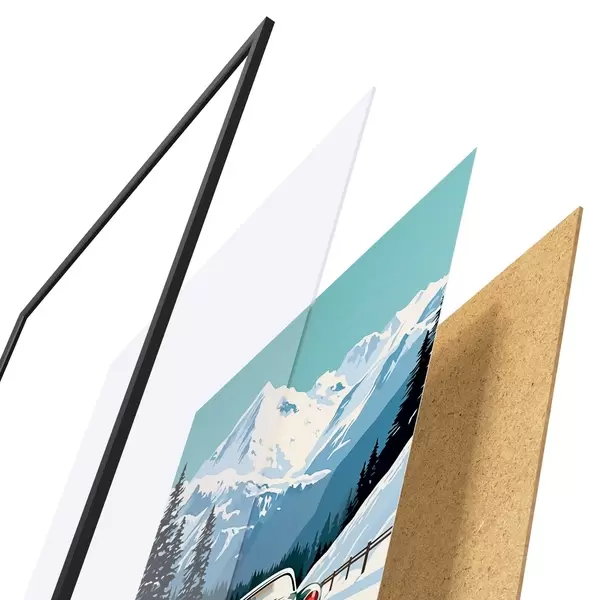 Plakatą sudaro rėmas, pleksiklas, atspausdintas vaizdas ir medžio drožlių plokštės pagrindas. Plakatą galima iš karto pakabinti ant sienos dėl kitoje pusėje esančių laikiklių.