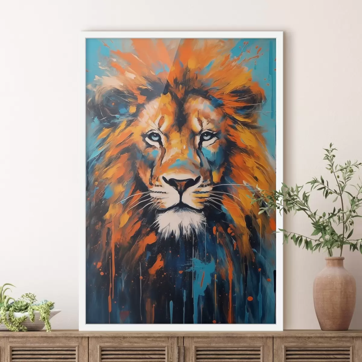 Plakatas Ryškus abstraktus ugninės mėlynos spalvos liūtas Ne f41480