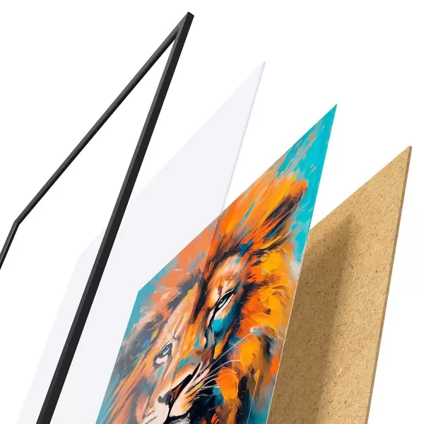 Plakatą sudaro rėmas, pleksiklas, atspausdintas vaizdas ir medžio drožlių plokštės pagrindas. Plakatą galima iš karto pakabinti ant sienos dėl kitoje pusėje esančių laikiklių.