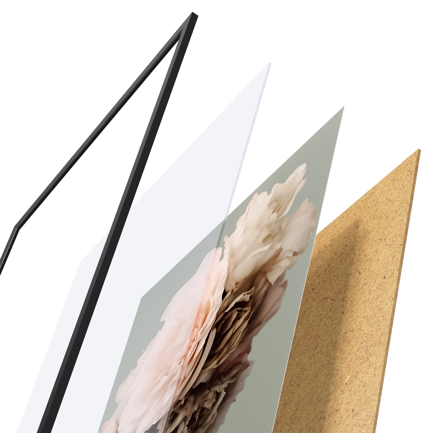 Plakatą sudaro rėmas, pleksiklas, atspausdintas vaizdas ir medžio drožlių plokštės pagrindas. Plakatą galima iš karto pakabinti ant sienos dėl kitoje pusėje esančių laikiklių.