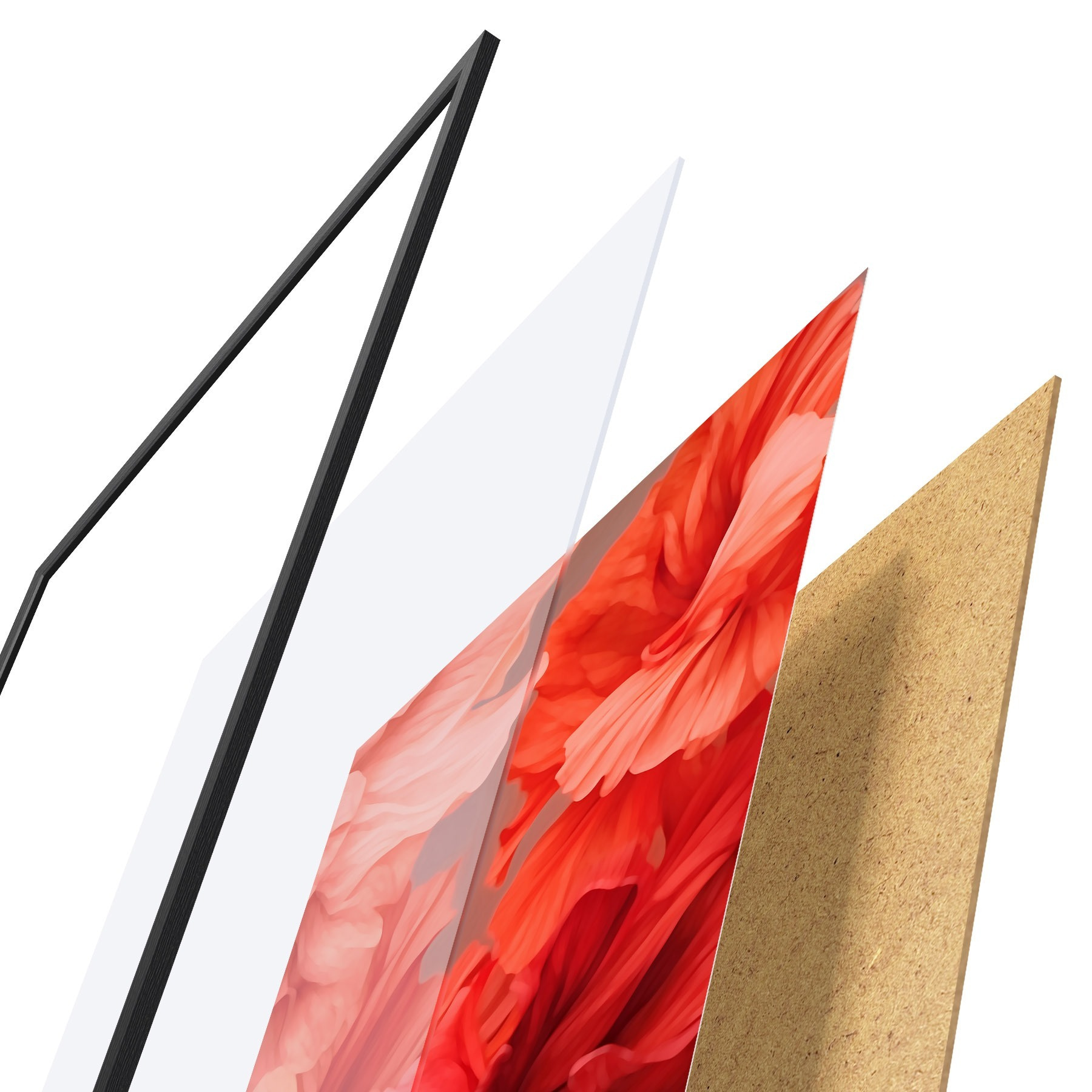 Plakatą sudaro rėmas, pleksiklas, atspausdintas vaizdas ir medžio drožlių plokštės pagrindas. Plakatą galima iš karto pakabinti ant sienos dėl kitoje pusėje esančių laikiklių.